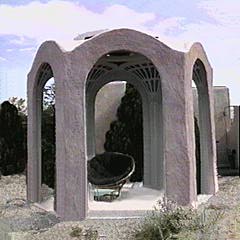 Since this building required no insulation, a lightweight concrete made from pumice was used. This structure was built by Leslie Feuerborn. Les is an architectural artist.