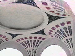 One interesting and powerful idea in forming structures with a mold is that the mold or form can have textured relief cut into it. Various architectural designs can be incorporatated into the mold to create designs in relief when the wall is cast. Notice the ceiling design. In this case, the relief was further enhanced by antiquing with ordinary latex paint.